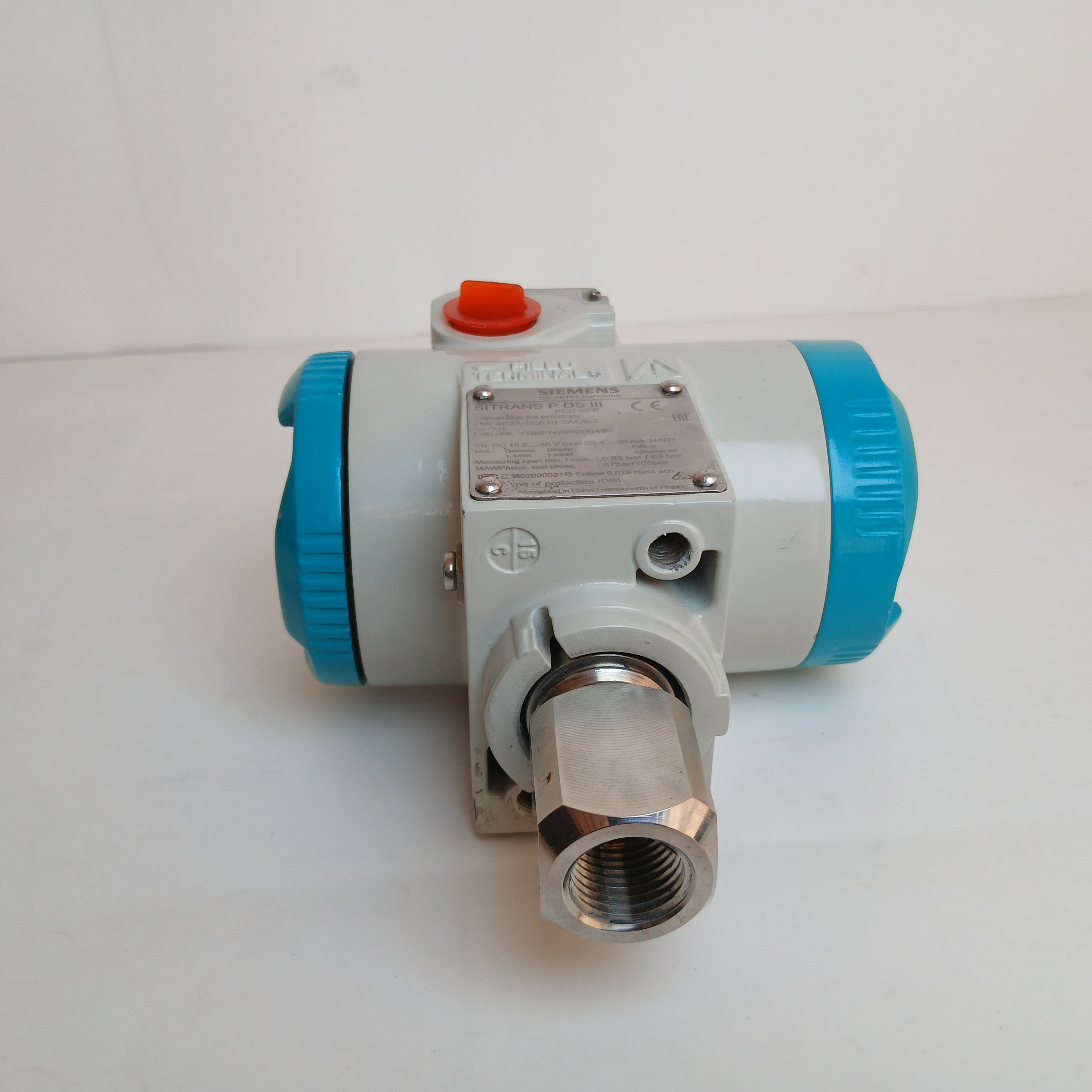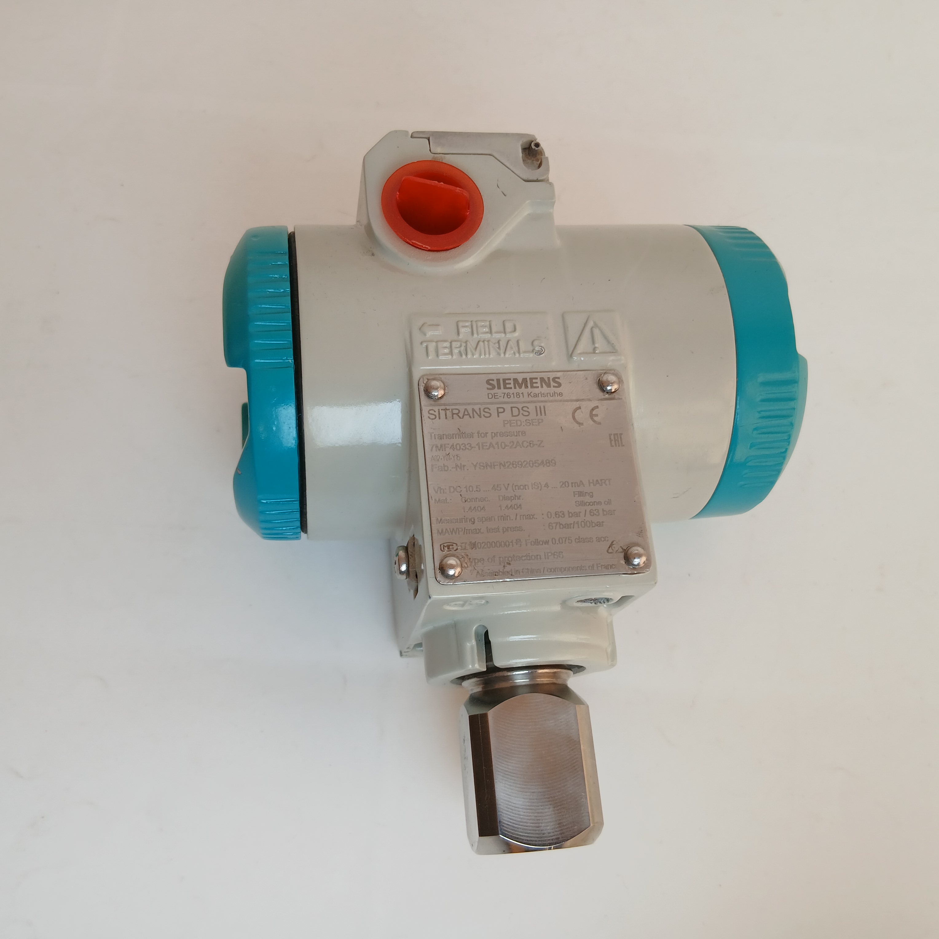 Measuring cell filling silicone oil, normal cleaning Span: 0,63 ... 63 bar g (9.14 ... 914 psi g), overload limit 100 bar Diaphragm stainless steel, measuring cell stainless steel Process connection: female thread 1/2-14 npt Die-cast Aluminium housing International design English inscription and documentation as cd None explosion protection Electric connection and cable inlet: cable gland 1/2-14 npt Housing cover with window With steel mounting
