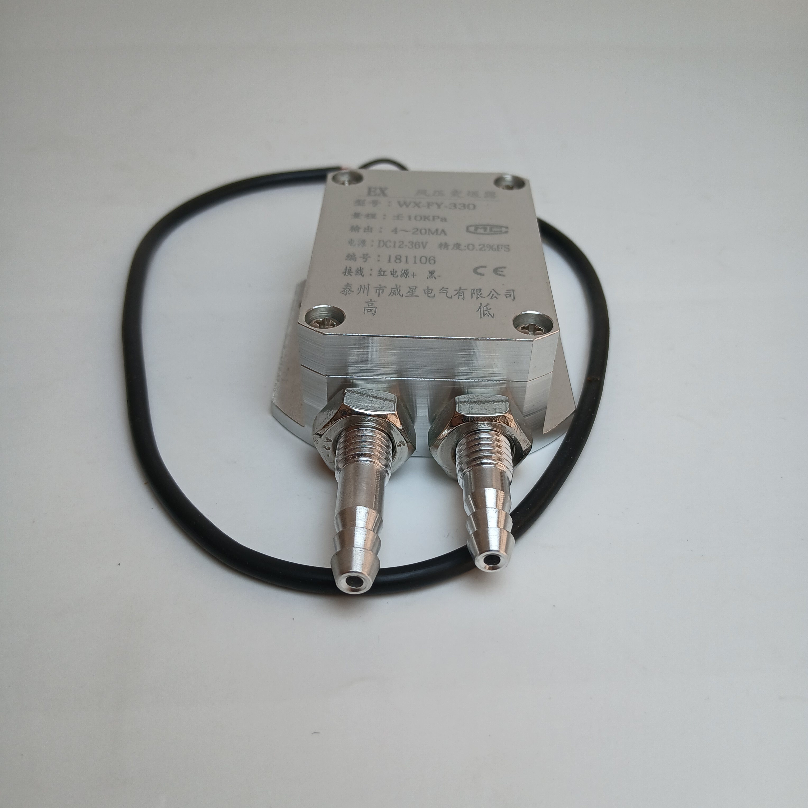 ترانسمیتر اختلاف فشار محیطی با رنج فشار استاتیک پایین و رنج اندازه گیری 10 کیلو پاسکال و خروجی جریانی دو سیمه 4-20 میلی آمپر و منبع تغذیه 24 ولت بدنه تمام آلومینیوم