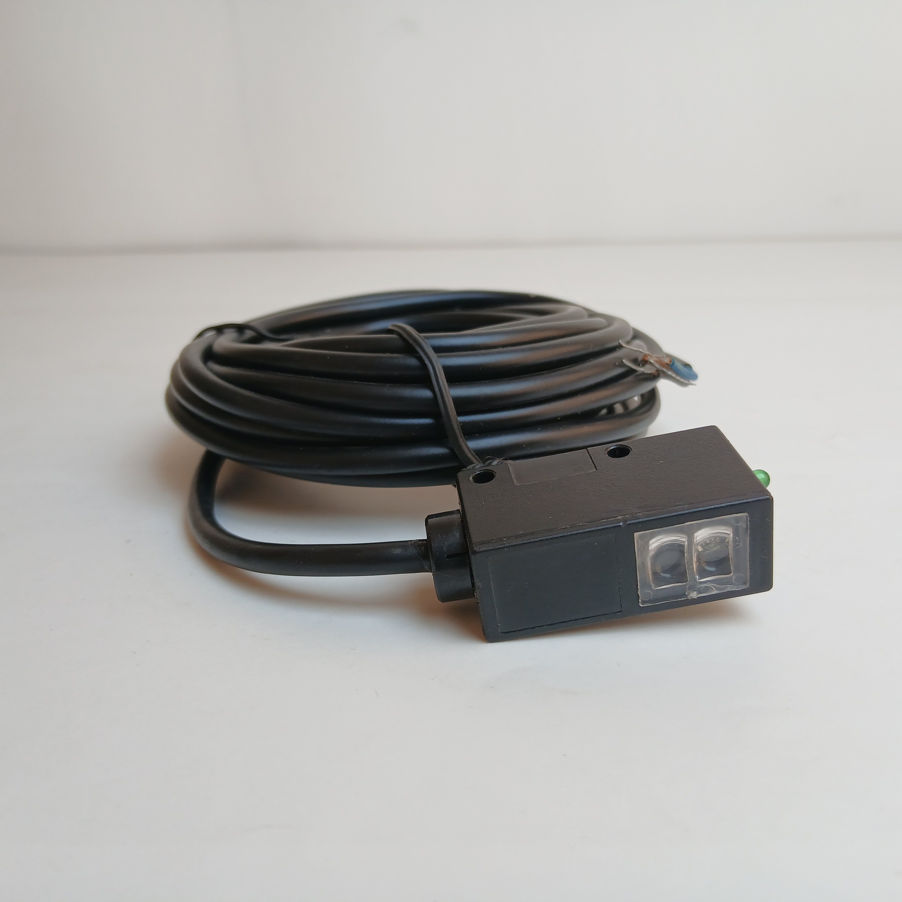 سنسور نوری یک طرفه PNP کعبی با قابلیت تنظیم حساسیت و نمایشگر اتصال تغذیه و فعال شدن خروجی